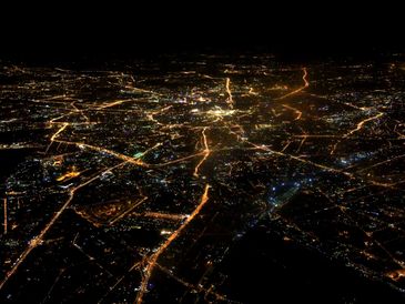 Neon lights reflected in little one's eyes, while staring at stacks of stuffed animals appearing to go as high as the night sky.
